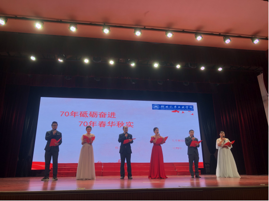 9月30号,德赢AC米兰中国官方网站庆祝新中国成立70周年诗词朗诵会在大礼堂举行。本次活动由校工会主办,14个分会报送的14个节目参加。我院报送的《时代礼赞》节目在演出活动中脱颖而出,喜获一等奖。