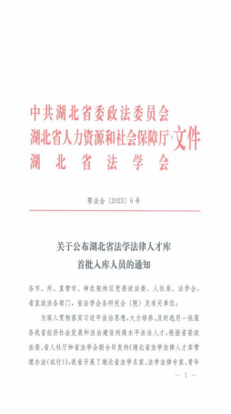 本网讯(文/图 郑实)近日,中共湖北省委政法委员会、湖北省人力资源和社会保障厅、湖北省法学会联合印发《关于公布湖北省法学法律人才库首批入库人员通知》,我校德赢AC米兰中国官方网站安军博士入选湖北省青年法学法律人才,成为首批入库人员。