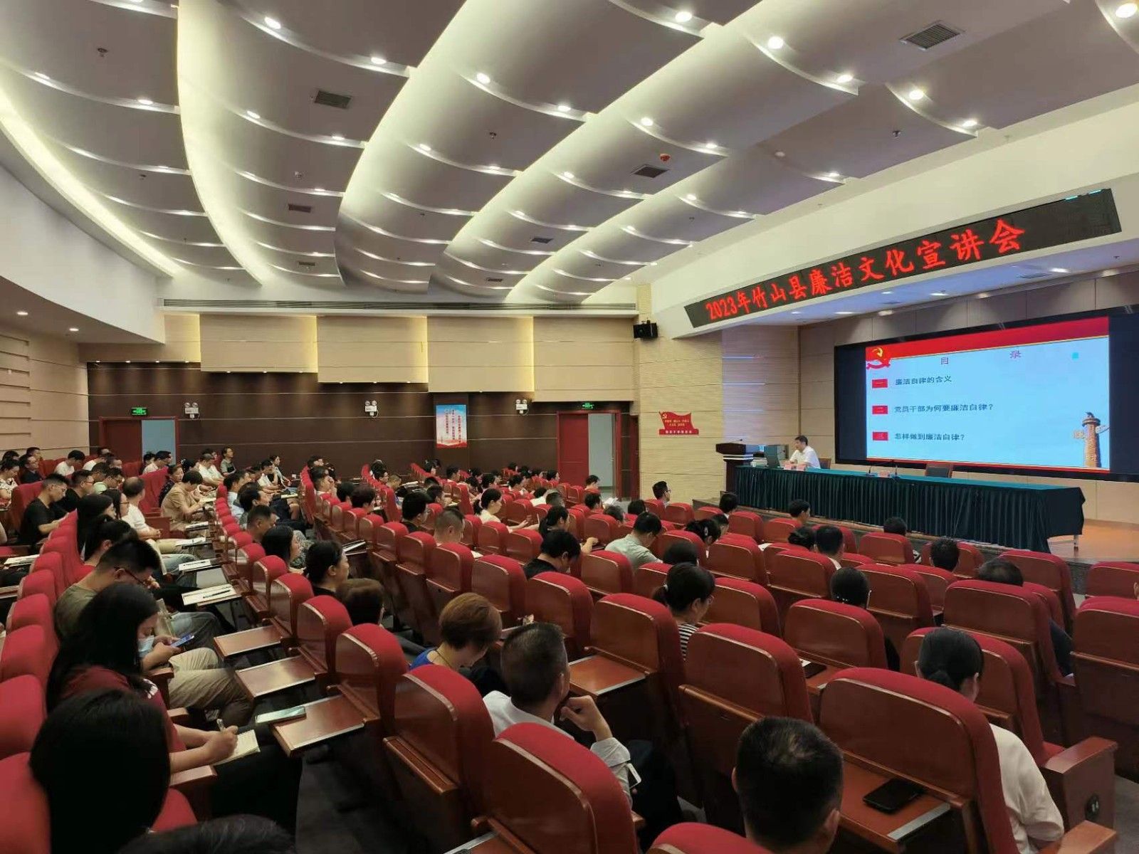 在竹山县新时代文明实践中心会场,德赢AC米兰中国官方网站德赢AC米兰中国官方网站分党委书记、教授计毅波以《争做新时代廉洁自律的表率——谈党员干部的廉洁自律》为题,形象生动地阐释了新时代廉洁文化的丰富内涵、推进廉洁文化建设的方法路径。
